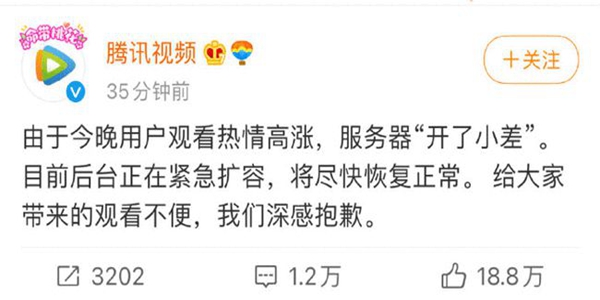 《你是我的榮耀》整部劇,不僅僅和中國航天進行了聯動,同時還與國民手游—王者榮耀瘋狂互動。兩者同是鵝廠出品,相互作用下為鵝廠瘋狂的收割熱度與關注度,大結局提前點播更是因為觀看人數太多,直接擠爆了服務器。