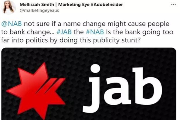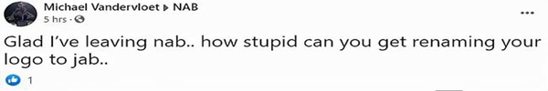 有網友表示:“很高興我要離開NAB了。把自己的名字改為為JAB,是有多愚蠢。”