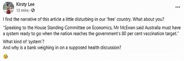 另一位社交媒體用戶則建議NAB堅持銀行業務,不要干涉疫苗接種的討論。
