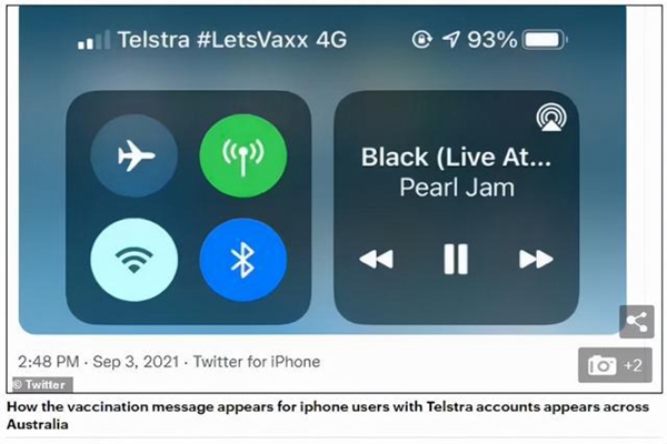 Telstra直接將客戶的移動網絡名稱更改為了Telstra #LetsVaxx,目的就是呼吁更多人盡快接種疫苗。