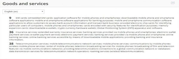 該申請(qǐng)是由法國(guó)巴黎的中間人Gilbey Legal提交的,歸類(lèi)為9/36/38類(lèi)。說(shuō)明顯示該技術(shù) 將提供從電信服務(wù)到電子錢(qián)包和銀行服務(wù)工具以及擴(kuò)展保修服務(wù)的多種功能。